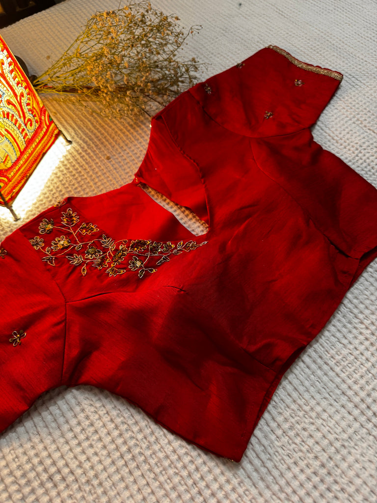 Ready made blouse size is 38 bust size but can be made smaller or bigger. Can be made upto 40 size .