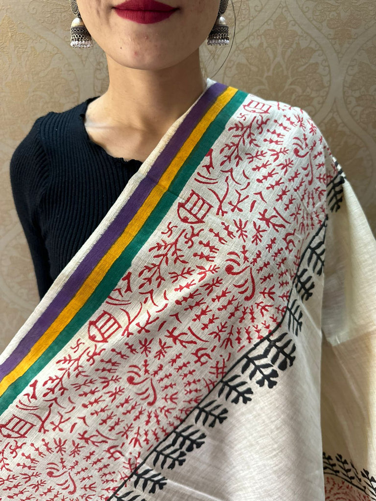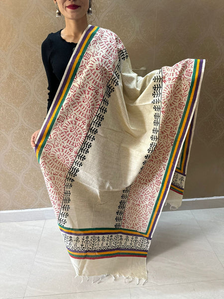 Hand block printed cotton dupatta.