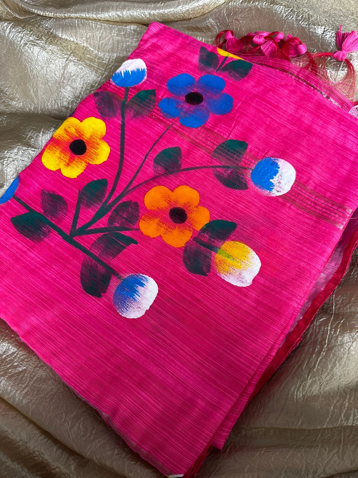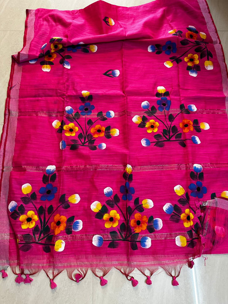 Silk cotton hand painted saree with blouse material.