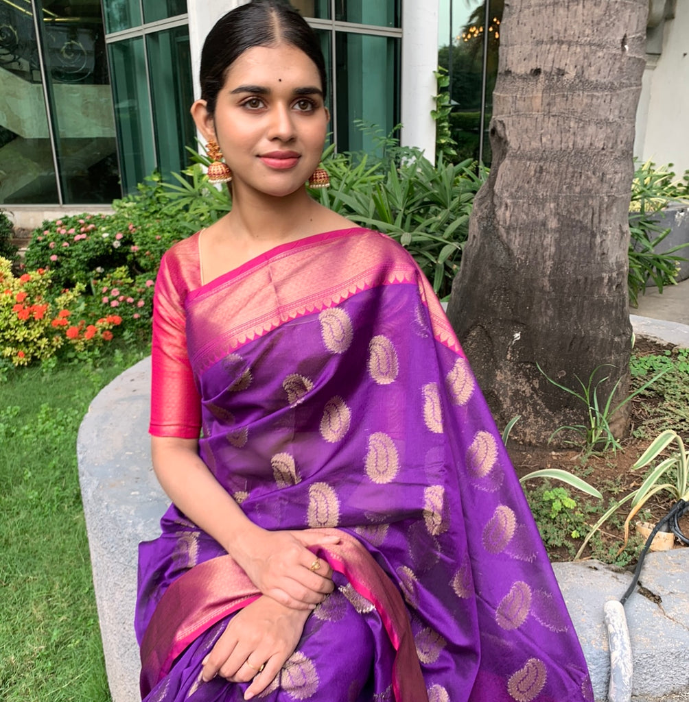 Banarasi silk cotton sari with blouse material. Refer last image for blouse.