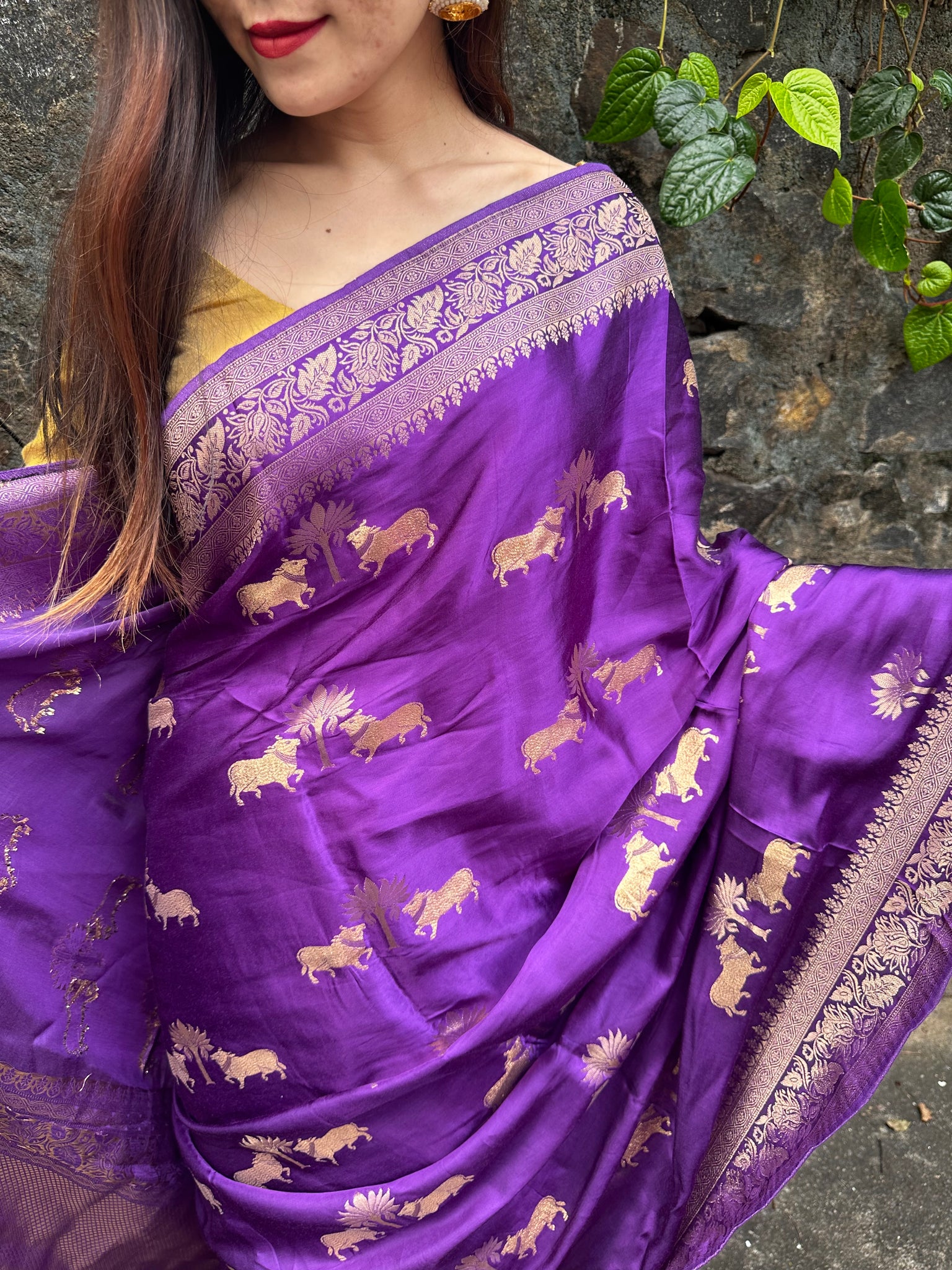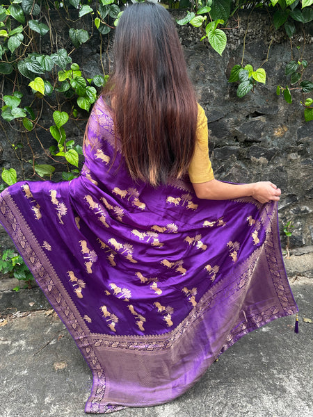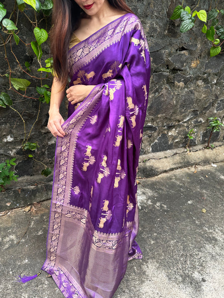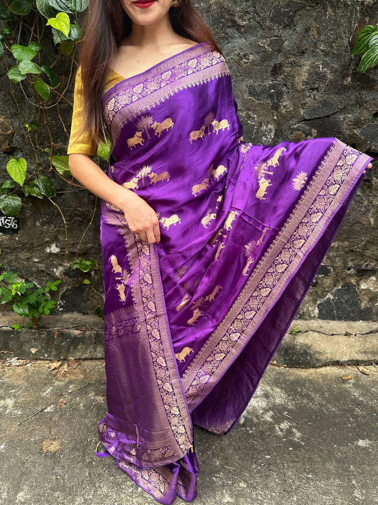 Pure Mashru silk saree with blouse material. Refer last image for blouse material.