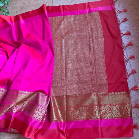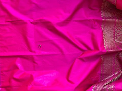 Saree has a thin straight black line( weaving defect ) running horizontally throughout the saree hence discounted. ( refer last 2 images )